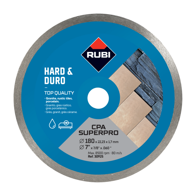 RUBI's range of CPA diamond blades is especially recommended for cutting hard materials such as: granite, rustic stoneware, clinker, refractories, slate, etc.